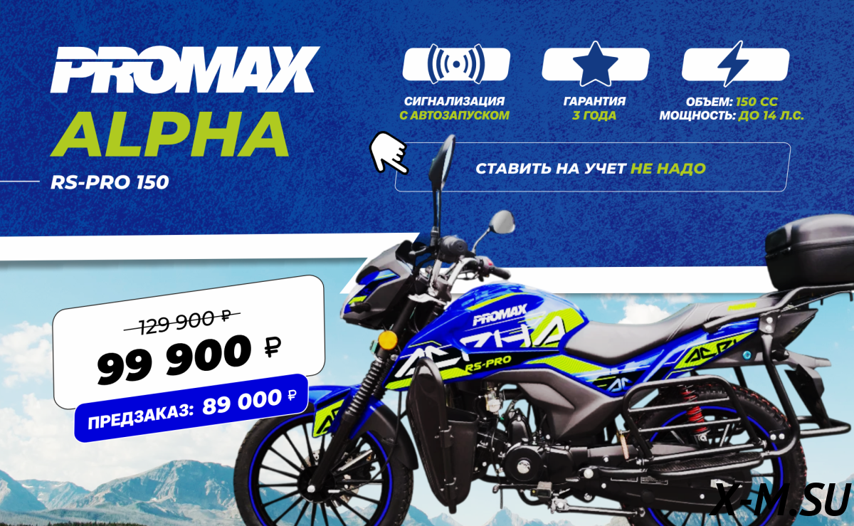 Самый ТОПовый мопед на Российском рынке! 150куб.см 14л.с (по документам 49куб.см)  ставить на учет не надо! PROMAX ALPHA RS-PRO - это набор самых современный технологий: Двигатель ... Подробнее